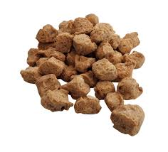 Ingredients: Soy flour, caramel color, salt, natural and artificial flavors, spices, and vitamins/minerals (zinc oxide, niacinamide, ferrous sulfate, copper gluconate, Vitamin A palmitate, calcium pantothenate, Vitamin B1, B6, B2, B12).